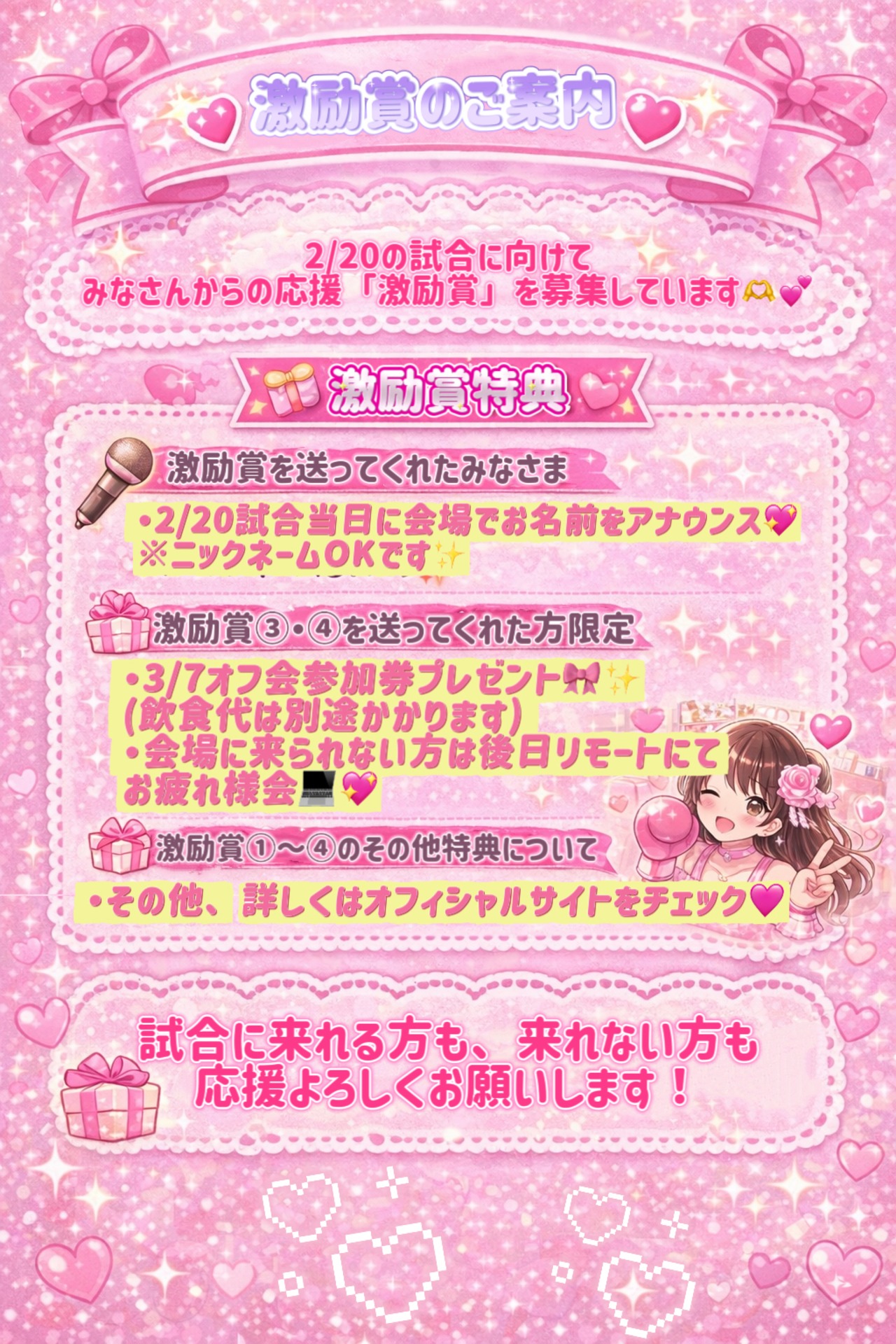 備考欄に会場で読み上げる際の名前(ニックネーム可)や会社名の記載をお願いいたします。